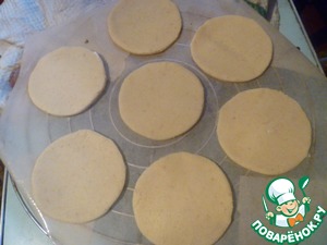 Кружки теста выложила на пергамент смазанный растительным маслом.