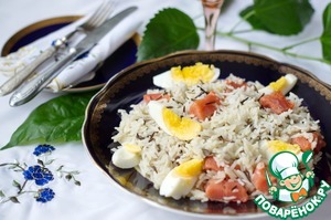 Получился вкусный салат, по мотивам кеджери. Подавать в теплом виде.