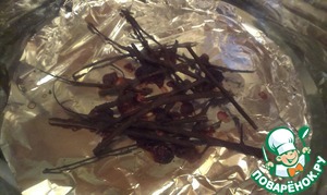 Палки кладем на фольгу, устеленную на дно чаши. Так же их нужно положить на верхнюю решетку -