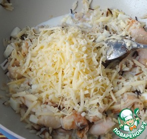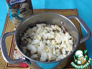 Добавьте к нему рубленые яйца, перемешайте.