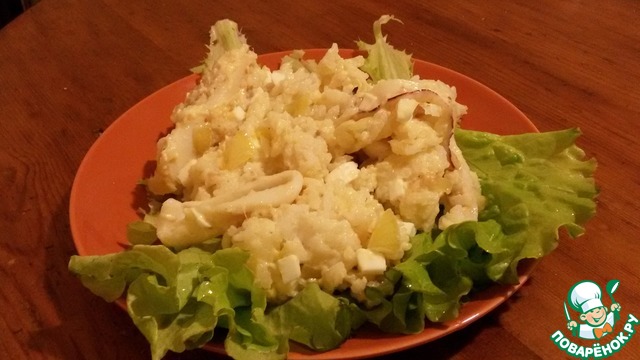 Соедените с кальмарами и луком.