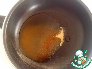 Карамелизировать в сковороде коричневый сахар с водой.