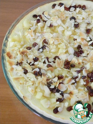 Уважаемые поварята, спешу поделиться с вами вкуснейшим, нежнейшим десертом. Пирог, на мой взгляд, похож на творожную запеканку со вкусом блинов. Плотный по структуре, но очень мягкий. Прекрасным дополнением к нему идут яблоко, изюм и миндаль. За счет молотой корицы пирог очень ароматный. Рецепт я нашла на одном кулинарном форуме, сразу он запал мне в душу и я приготовила его незамедлительно, усилий минимум, получается большой пирог. Удержаться невозможно! Заходите в гости, блины печь не будем.
