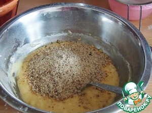 Взбить три белка до тугих пиков и осторожно вмешать в тесто.