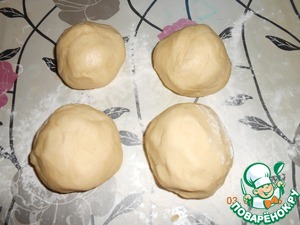 Делим тесто на четыре части и раскатываем не очень толсто