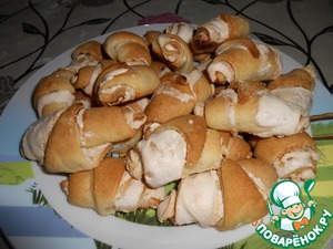 , так как предпочитаю ванилину ванильный сахар, то ароматизировала безе, а не тесто. Зато при выпечке стоял характерный запах печенья на сметане, да ещё и ванилька, м-м-м... Кстати, может я очень старательно и тонко раскатывала пласты теста, но лишней начинки у меня не осталось. В общем, рецептик в КК, и обязательно буду использовать. Спасибо, что поделились