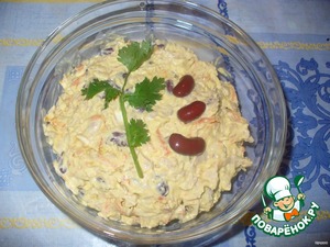 Рецепт тоже позаимствовала из журнала. Любителям курочки и фасоли понравится! Лично нам очень приглянулся, быстро, недорого и вкусно! На сайте вроде нет, но салатов так много, что может, и пропустила.