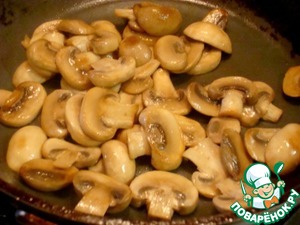 За 20 минут до окончания варки риса нарезать кружками грибы. Обжарить их на сильном огне, на растительном масле 10 минут.
