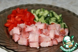 Огурец, перец и филе рыбы нарезать крупными кусочками.