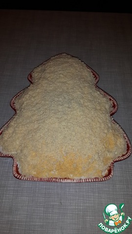 7. Теперь трем на той же мелкой терке желтки и распределяем сверху.