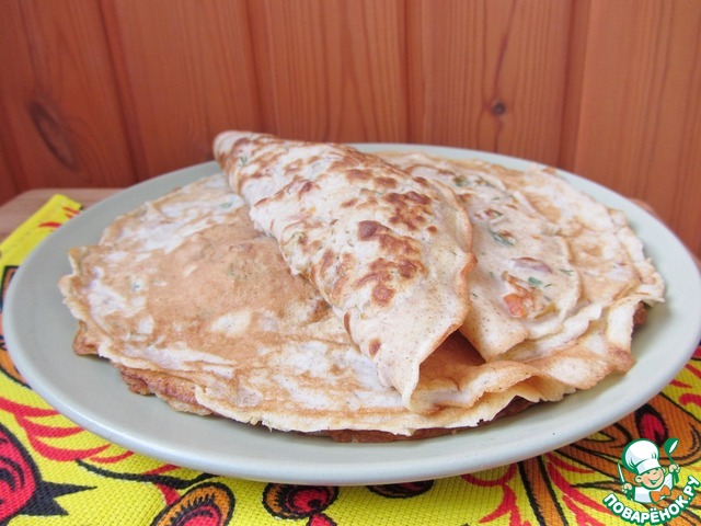 Рецепт «Блины с курицей и зеленью по-деревенски»: