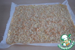 Сверху на тесто равномерно распределить миндальные лепестки.