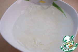 Замочить желатин в холодной кипячёной воде.