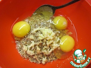 грецкие орехи+чеснок+корианд р+винный уксус+яйца+присолить=