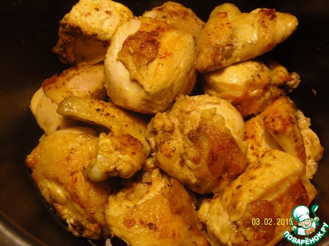 - Курица (можно только бедра или ножки, кто что любит) — 1300 г