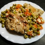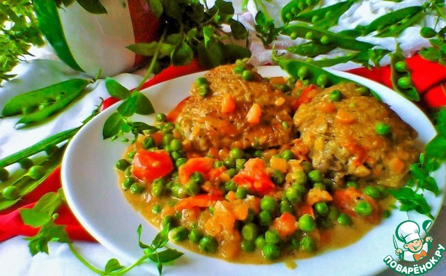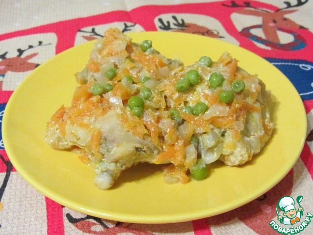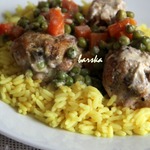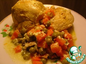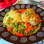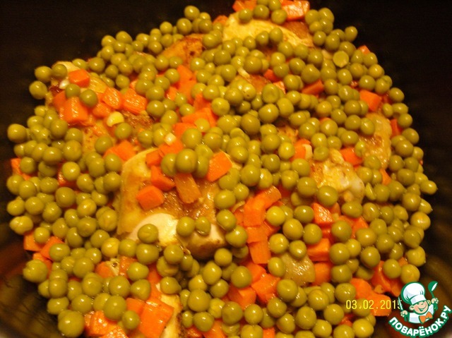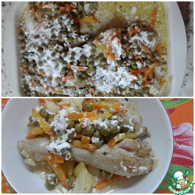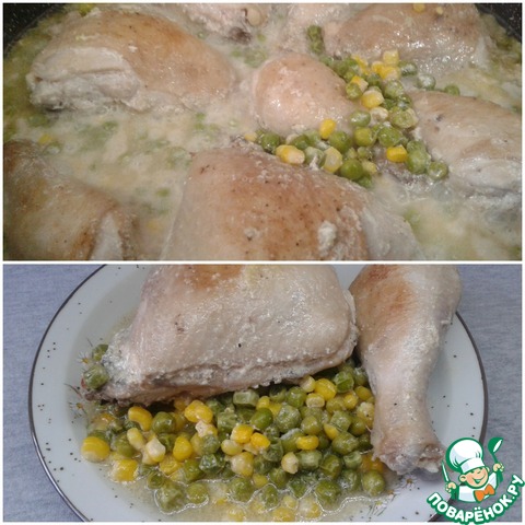 [+5]Куриные зап.части обжаривала, сняв кожу. Горошек у меня из заморозки и вместо сметаны исп-ла сливки.