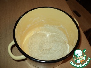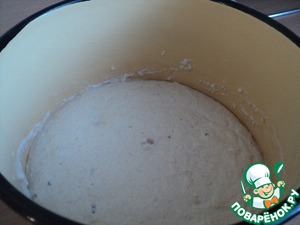 В холодильнике опара за ночь увеличивается в 4-5 раз. ( Если решите ставить опару днём и не в холодильнике, то при 30 С надо ждать около 3 часов, следя за готовностью опары. Готовность определяется по пику подъёма опары, либо по началу прогибания её в центре.
