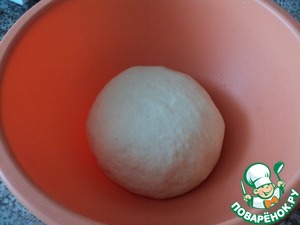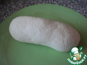 Получаю красивый, шелковистый, не липнущий к рукам шарик теста. Оставляю его в теплом месте, накрытым пищевой плёнкой, чтобы не заветрилось. 2 обминки- через 30 минут и через 60 минут.