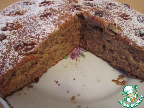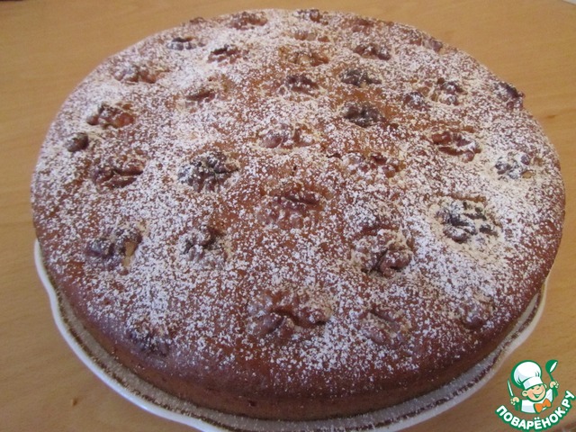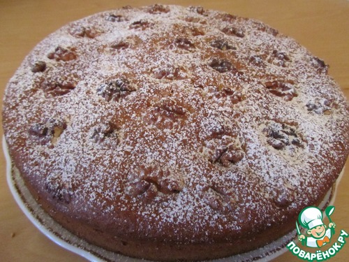 Когда пирог остынет, переложить его на блюдо и посыпать сахарной пудрой.