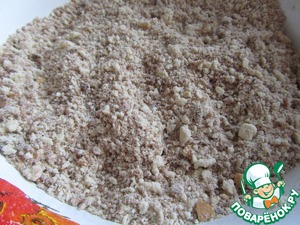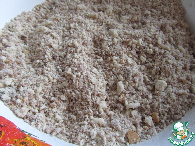 Бисквит должен быть черствым, тогда он будет хорошо крошиться. У меня остались кусочки от торта 3-х дневной давности, я измельчила их на терке.