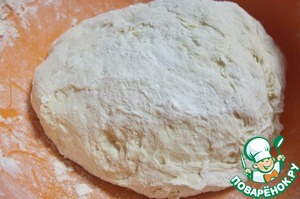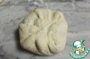 Подошедшее тесто обминаем. Из указанного количества ингредиентов получится 10 лепешек. Делим на 10 частей. Я разделила на шесть, часть теста оставила для мясного пирога