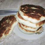 Раскатываем скалкой в лепешку, и укладываем на раскаленную сковородку смазанную маслом.