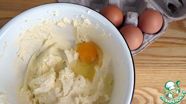 Масло и сахар взбиваем миксером не менее 5-7 мин. До однородной массы. Вводим яйца. Они тоже должны быть комнатной температуры, и полежать вне холодильника, не менее 2х часов. Яйца вводим по одному! Эту нужно для того, чтобы тесто не расслоилось. Ввели одно яйцо, взбили до однородности, затем другое и т. д.