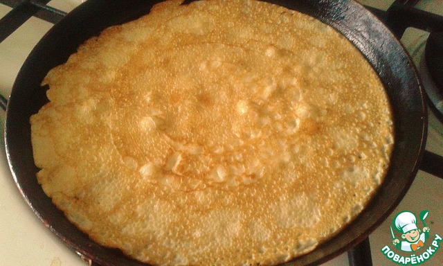 Печем блины. У меня на блин уходит по 3 ст. л. теста