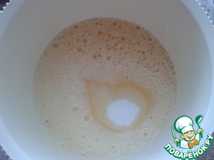 Смазываем форму маслом, посыпаем манкой, сухариками (кто, чем привык это делать), выливаем в неё тесто и ставим выпекаться на 25 минут. Форма нужна среднего размера
