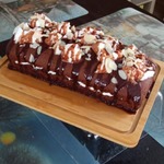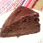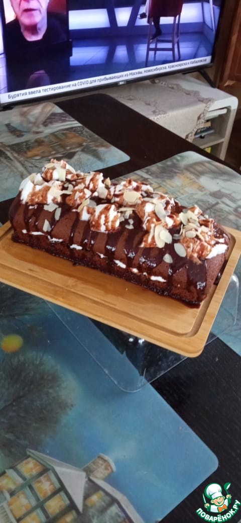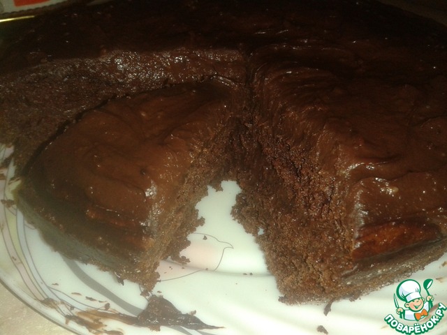 Когда прошло необходимое время, готовим глазурь. Шоколад растапливаем в сливках на маленьком огне и сразу же выливаем её на тортик. Даём глазури застыть. Прошу у всех прощения, но у меня до этого этапа не дошло, потому что муж с сыном решили попробовать по кусочку, но им так понравился тортик, что они не стали дожидаться глазури, а потом поливать было уже нечего, едва успела сделать фотку, пока они кусочки отрезали один за другим)))