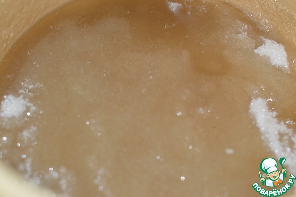 Агар поставить на средний огонь, довести до кипения, всыпать сахар и варить, помешивая, пока масса не достигнет 110*С. Снять кастрюлю с огня.
