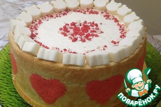 Убрать торт в холодильник на пару часов. Затем вынуть торт из формы и угощать близких!
