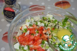 • Добаляем болгарский перец, сырое яйцо, масло. Не забываем посолить и поперчить.