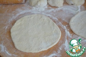 • Раскатываем круглые тонкие лепешки, 15 см в диаметре.