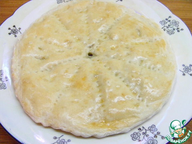 Вместо воды - 1% молоко. Получилось 8 лепешек ( по 145 грамм на 1 лепешку / на 2 = основа и верх )