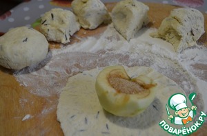 Облепить яблоко, чтобы шов залепливания был внизу, вверху - выпуклая сторона.