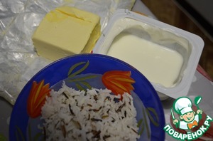От предыдущего рецепта у меня остался рис Басмати микс. Я использую его в рецепте, добавив к нему сметану, сливочное масло и муку.