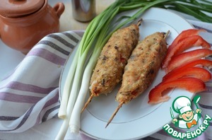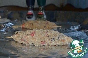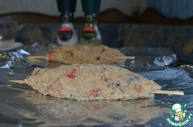 Сформировала прямо на шпажку вытянутую котлетку, обваляв ее в молотых сухариках.
