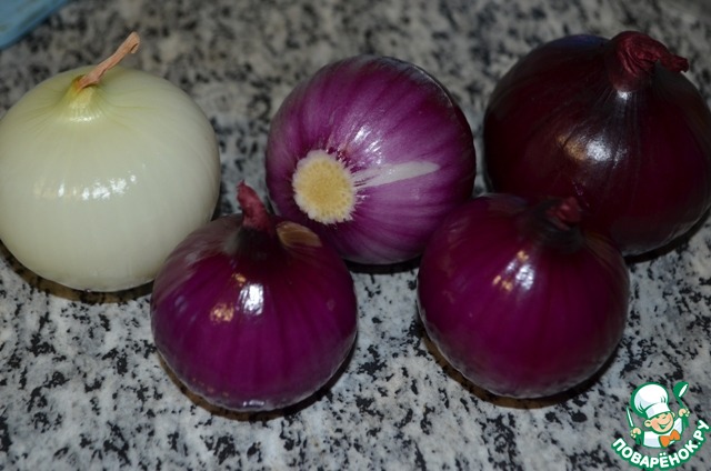 Лук можно брать только белый или только красный. Я для пробы решила попробовать и тот и другой, а в результате мне все же больше по вкусу лук белый.