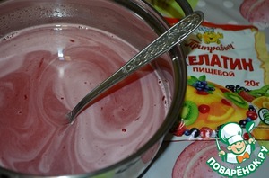 Желатин замочить 1 стак. хол. кипяченой воды, через 30 мин. нагреть, не доводя до кипения и добавить его в сок.