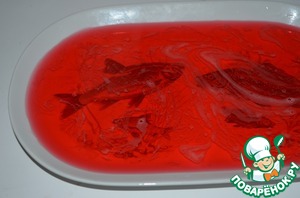 Разлить желе в плоское блюдо, убрать в холодильник. Когда хоршо застынет разрезать на маленькие квадратики и подать вместе с пудингом. Приятного аппетита!