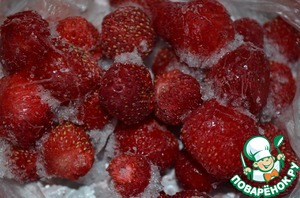 Для желе я взяла сок с домашней замороженной клубники. По вкусу добавила сахар.