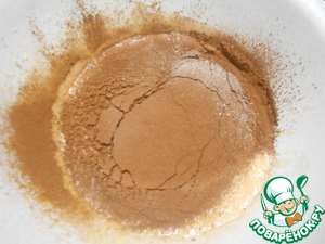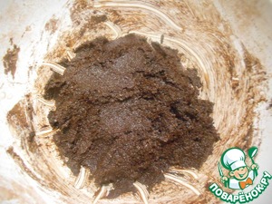 • Смешиваем сахар и какао, добавляем мягкое сливочное масло, хорошо все перетираем.