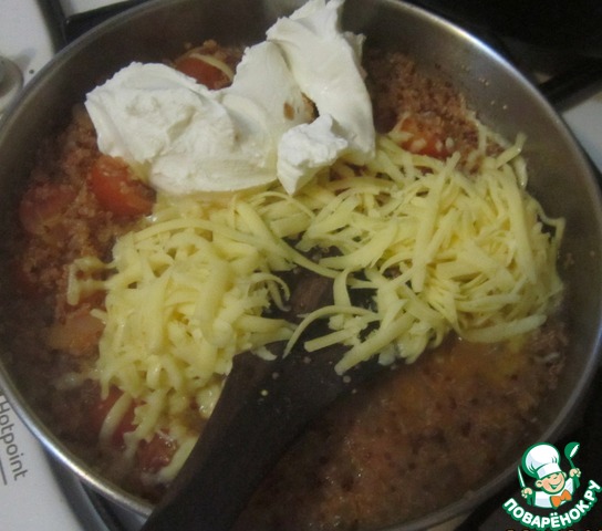• Подмешать маскарпоне и тертый сыр.