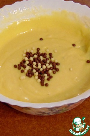 Добавить муку и шоколадные капли, аккуратно перемешать.