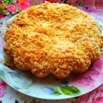 Насчет посыпки: все зввисит от степени помола кокосовой стружки. У меня в этот раз мелкая из "Ашана". Посыпка очень крошилась . Количество масла увеличивала.