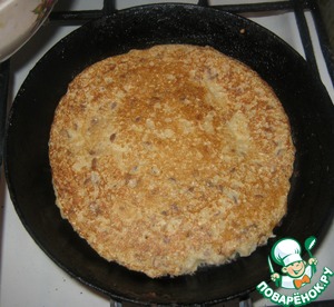 Обжариваем с двух сторон по минуте-полторы. У меня вышло 10 блинчиков, но количество колеблется от консистенции и сковородки. Блины вышли толстенькие (не скатываются да с отрубями и не скатаете))