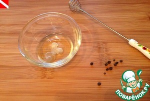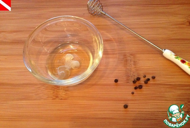 Готовим заправку - смешиваем небольшим венчиком или вилкой оливковое масло, мед, лимонный сок и соль.