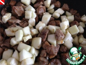 • Займемся начинкой. Мясо (у меня свинина, но очень хорошо здесь "звучит" и куриное филе) обжариваем на оливковом масле