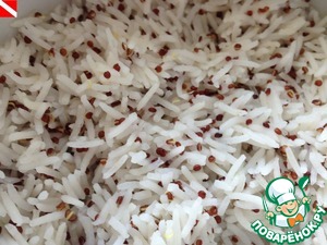 • Готовим смесь ароматного риса Басмати и киноа по инструкции. В подсоленной воде (соотношение крупы и воды 1:2) доводим крупу до кипения, огонь убавляем, плотно накрываем крышкой и томим на медленном огне 12-15 минут - до впитывания жидкости.